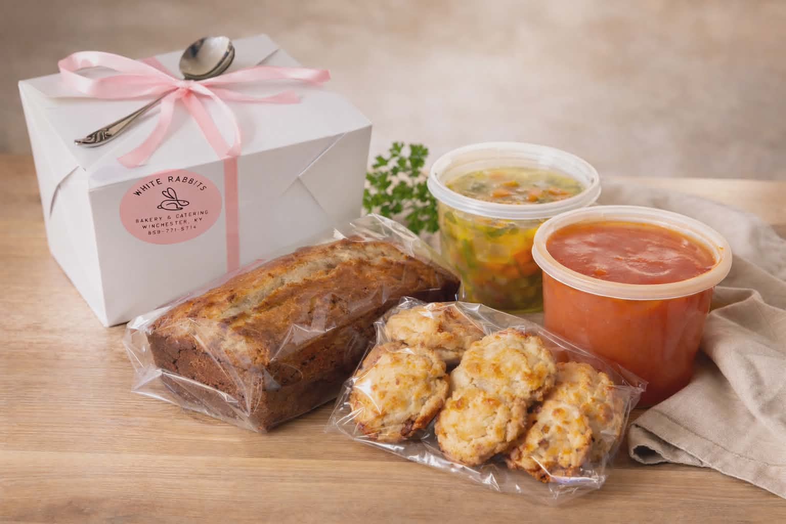 Our Care & Comfort Gifts are offered in a few varieties. They are thoughtful gifts designed to bring warmth, nourishment, and encouragement when it’s needed most. Each box is carefully curated with comforting items like homemade soup, soothing teas, and other cozy treats to help someone feel cared for from afar.